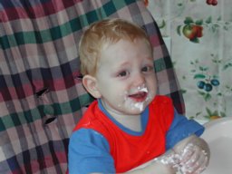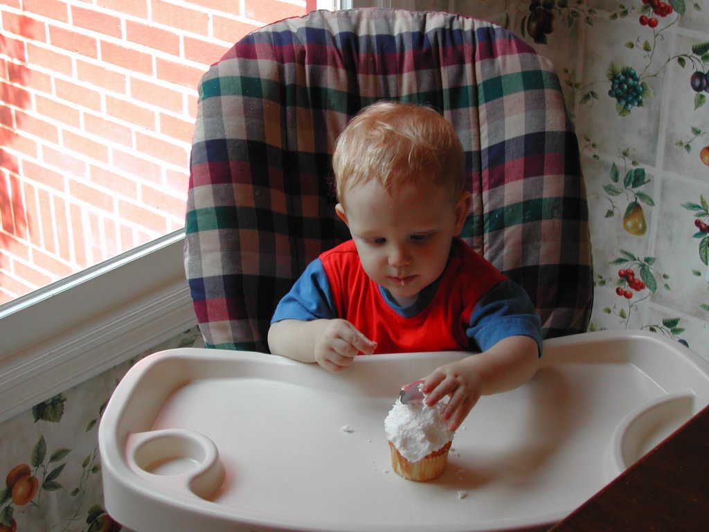 By special request, before-and-after pictures of Matthew and his birthday cupcake.