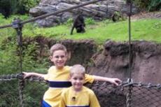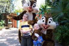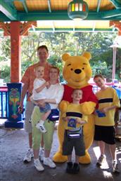 Next, we wandered over to the Asia section and the Kali River Rapids. Matt and I sat this ride out, since a)I didn’t want to get wet and b) Matt was too small. The riders were unanimously thrilled with it. After a quick snack, we went on to see It’s Tough to be a Bug. Mom and the older boys loved it; Matt spent the whole time with his face buried in Arlene’s shoulder. David and I rode the Dinosaur thrill ride, which he said was “so turbulent” that it “aggravated his motion sickness”. Indeed. So, here are a few pictures:
