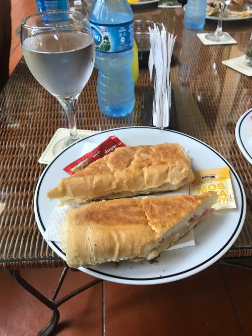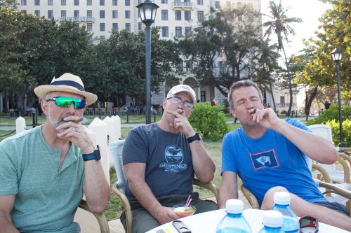 After the ride, we headed back to the apartment to disassemble and pack up the bikes. Once again, I owe a great debt of thanks to Lance for being our on-call bike mechanic. He had all the bikes disassembled and packed up within about 90 minutes, while the rest of us were showering and packing the rest of our stuff. The afternoon schedule called for us to go back to Hotel Naciónal for a rite of passage: smoking a real Cuban cigar, while in Cuba. First, of course, we needed to eat, on the theory that such a fancy hotel would have good bar food. They did, on condition that you liked ham and cheese sandwiches (with or without pickles): that’s all they offer. When I say “all,” that’s what I mean: no sides, just sandwiches.