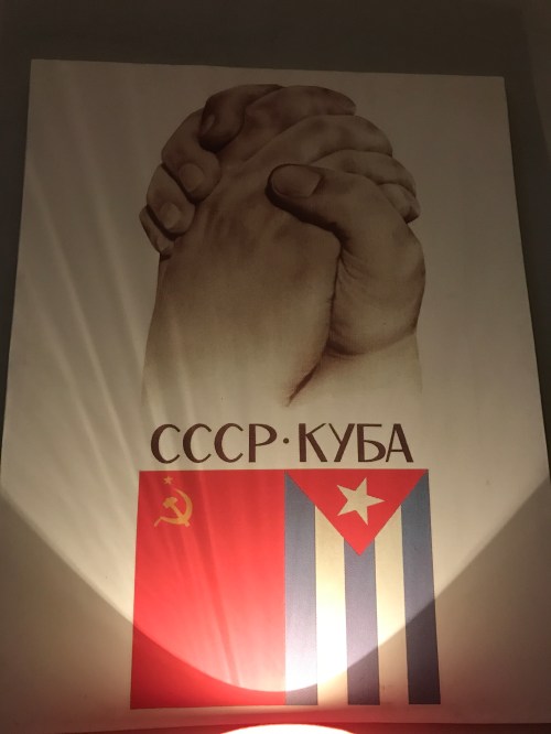 It was surreal to be sitting in a Soviet-themed restaurant, surrounded by flags and posters of what used to be the maximum bad guys, in Cuba. Seeing the hammer-and-sickle flying outside was weird.