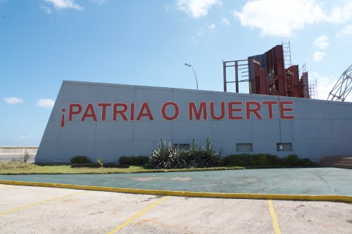 The embassy faces Monte de las Banderas (“monument of the flags”), a Cold War-era plaza with hundreds of now-empty flagpoles. It’s flanked by two giant signs with famous slogans… they’re not much to look at in person, especially with the oddly empty flagpoles towering over them. (Bonus: the guard yelled at us to get off the grass.)