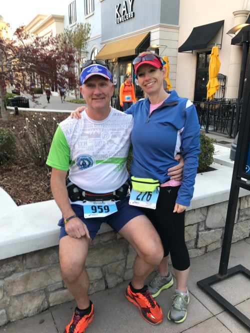 We woke up about 530a, with a goal of getting to the race site about 630a. This turned out to be easy. One of the nice things about Bridge Street is that it’s held at an outdoor mall. There is plenty of parking and tons of porta-potties, as well as some nice indoor bathrooms. We wandered around to chat with people for a while, then queued up near the 2:30 pace group for the gun start.