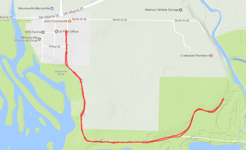 I wish I had kept better notes on the race itself. The Bridge Street course winds through Research Park, which is pretty flat and not all that scenic for the most part. The course starts in front of Barnes and Noble, runs west for a bit along Old Madison Pike, runs north on Jan Davis and then on Explorer, loops around West Park, and then turns south again. Perhaps the most interesting part is the Double Helix path near HudsonAlpha, which is marked with educational signs about the human genome. It’s also interesting to note the incredible funk we smelled while running past one of Adtran’s buildings; it smelled like someone had bred a skunk the size of a VW Beetle, wrapped it in shrink wrap, and then boiled it in 10W40 motor oil. Truly a scent I will remember for a long time.