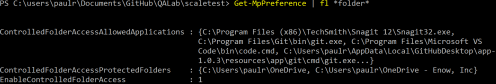 I spent some time scratching my head trying to figure out what to do, then discovered that you could enable Controlled Folder Access with the Set-MpPreference cmdlet. Of course, where there’s a Set- cmdlet, there’s usually a Get- cmdlet, and sure enough…