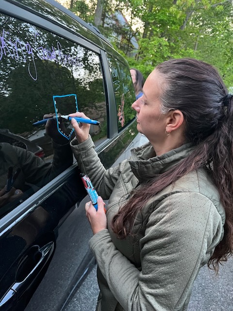 It’s traditional to decorate team vans, so after we walked back to the house, we got started on that. Our van was labeled “VAN HALEN” across the front (team 1 was “VAN MORRISON”) and then we started adding random pictures and text, each according to our own artistic abilities.