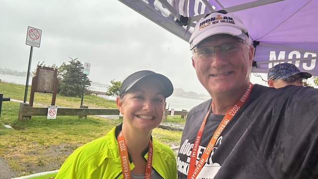 After the exchange, we found a small coffee shop for breakfast and went on with our pickup routine. The skies continued to darken and it became clear that it was going to rain– the forecast had called for rain after 3pm, but the forecast time of the rain’s start varied throughout the weekend. The bottom line is that our last three runners got rained on, and poor Erica was inundated. She had to run the finishing leg in a hard, steady, chilly rain, and she did it without a word of complaint. This didn’t surprise me, since she’s the same athlete who ran the last leg of American Odyssey on a bothersome knee in 85° heat, but I was proud of her.